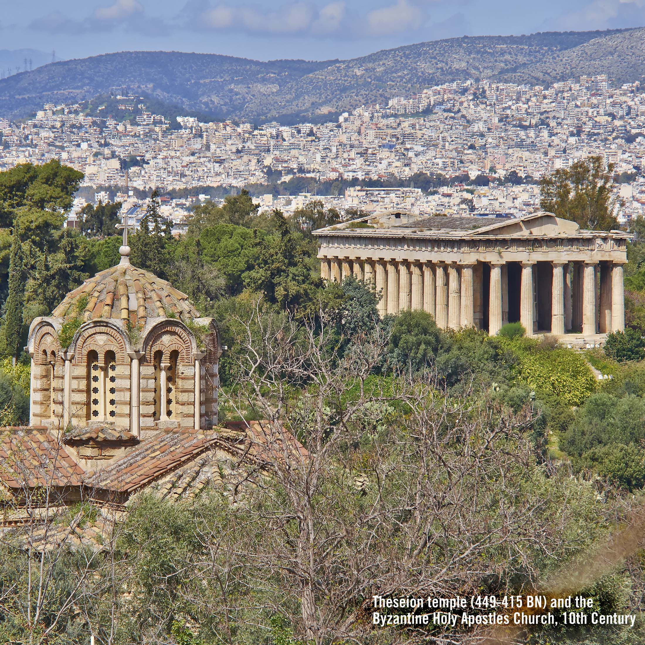 The Byzantine Holy Apostles Church (built 10th century) and the Theseion Temple (built 449-415 BC) both in Athens Greece - click on image to enlarge.