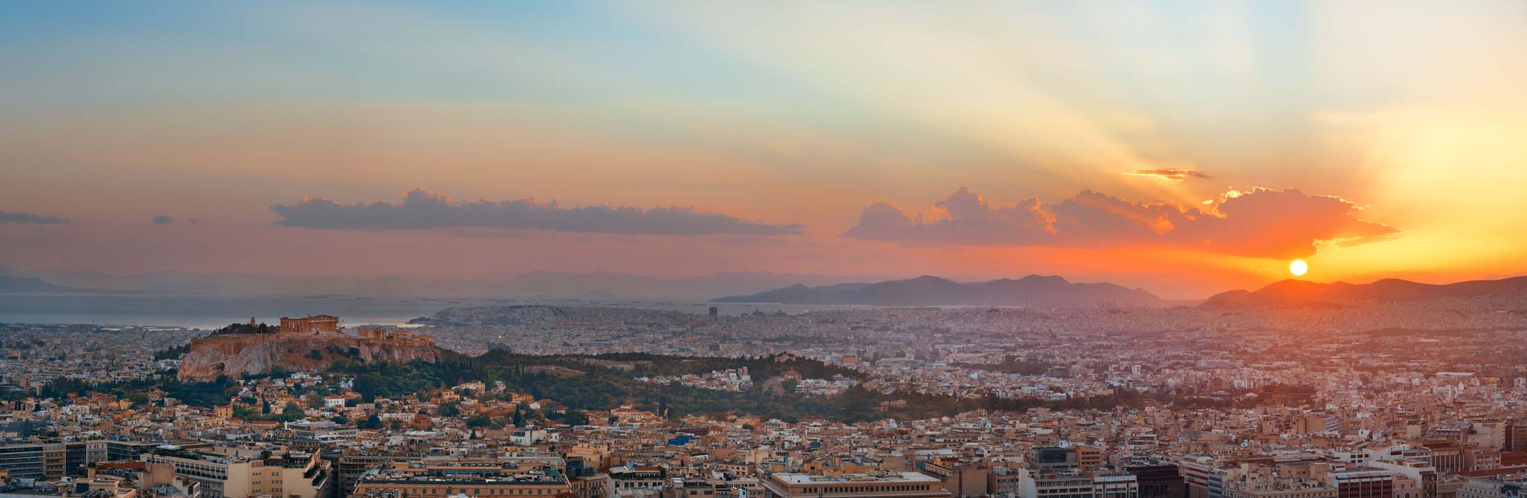 Looking down on the tiled roofs of Athens from atop the Acropolis