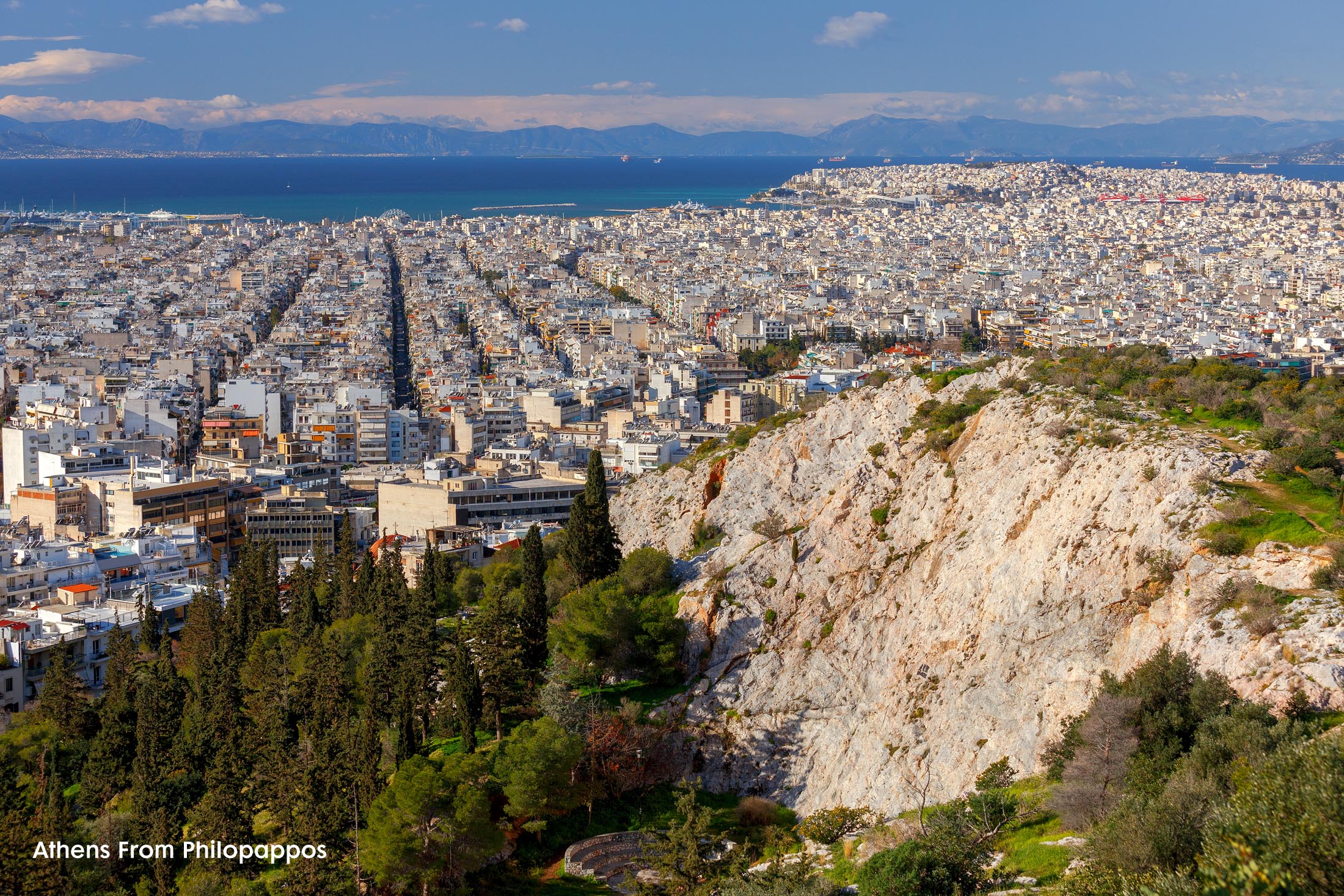 Looking down on the tiled roofs of Athens from atop the Acropolis